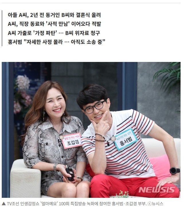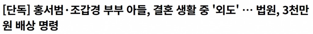 불륜 걸려서 개망신당한 연예인 부부 아들 조회 0 | 댓글 0건 네이마르로 2시간전 [단독] 홍서범·조갑경 부부 아들, 결혼 생활 중 '외도' … 법원, 3천만 원 배상 명령 | Save Internet 뉴데일리 0