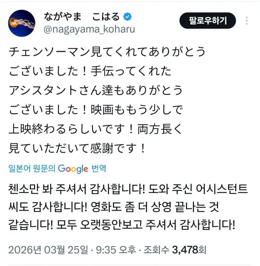 체인소맨 작가 트윗 근황