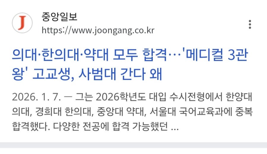 의대 한의대 약대 합격했는데 사범대 들어간 고등학생
