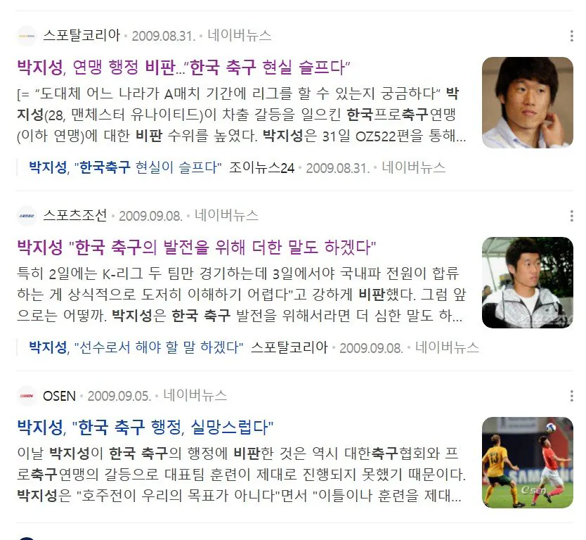 현역 시절에도 한국 축구 비판했던 박지성