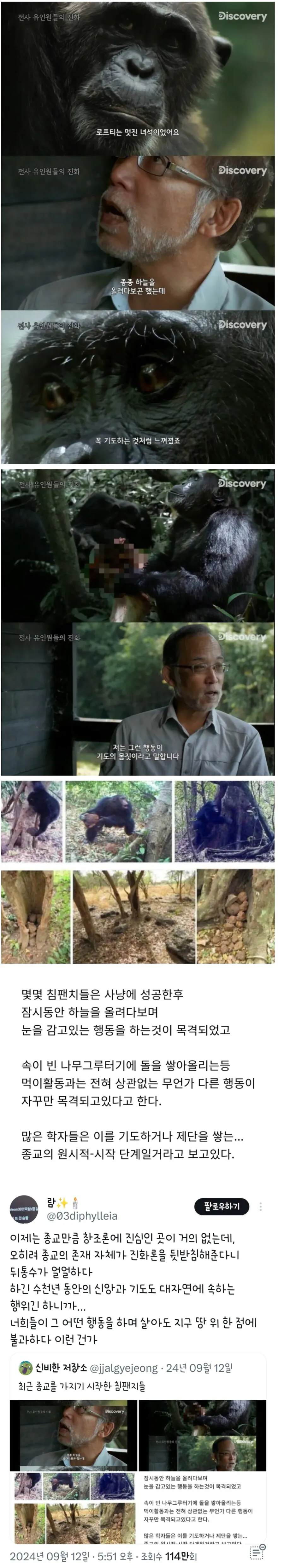 침팬치에게서 종교 활동이 감지되고 있다고 함...