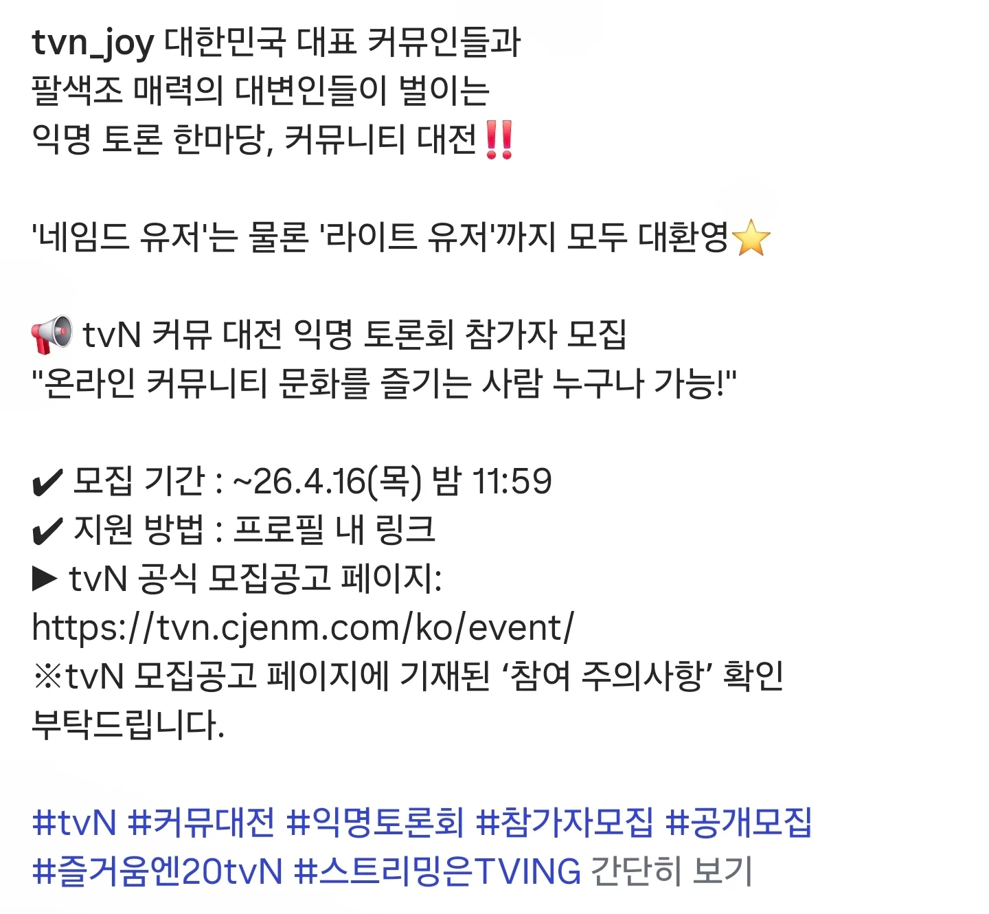 Tvn에서 진행한다는 "커뮤 대전"