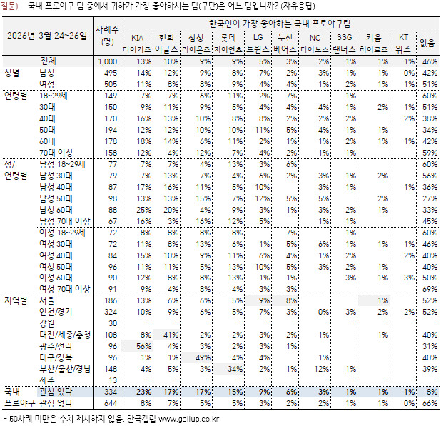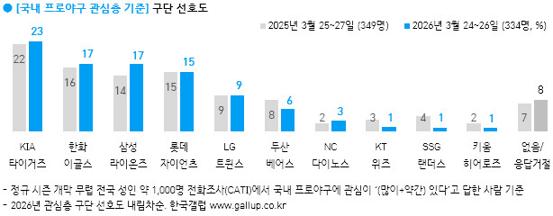 갤럽) 가장 좋아하는 프로야구 팀 조사 결과
