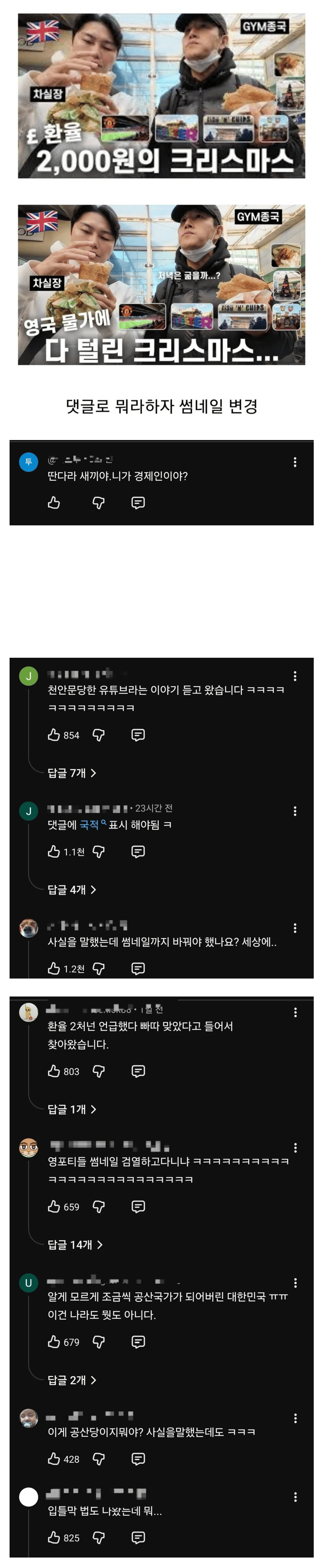 환율 언급했다가 썸네일 바꾼 유튜버