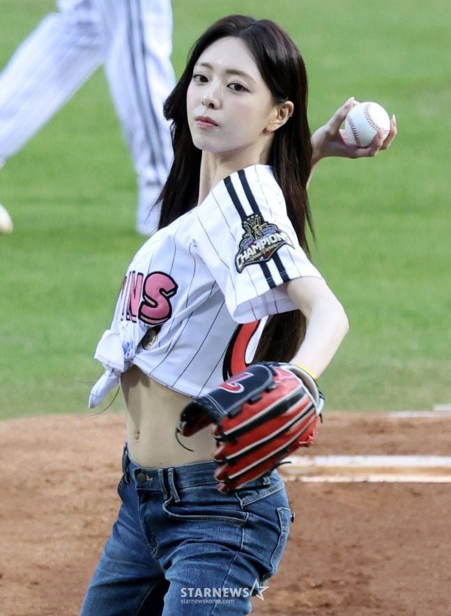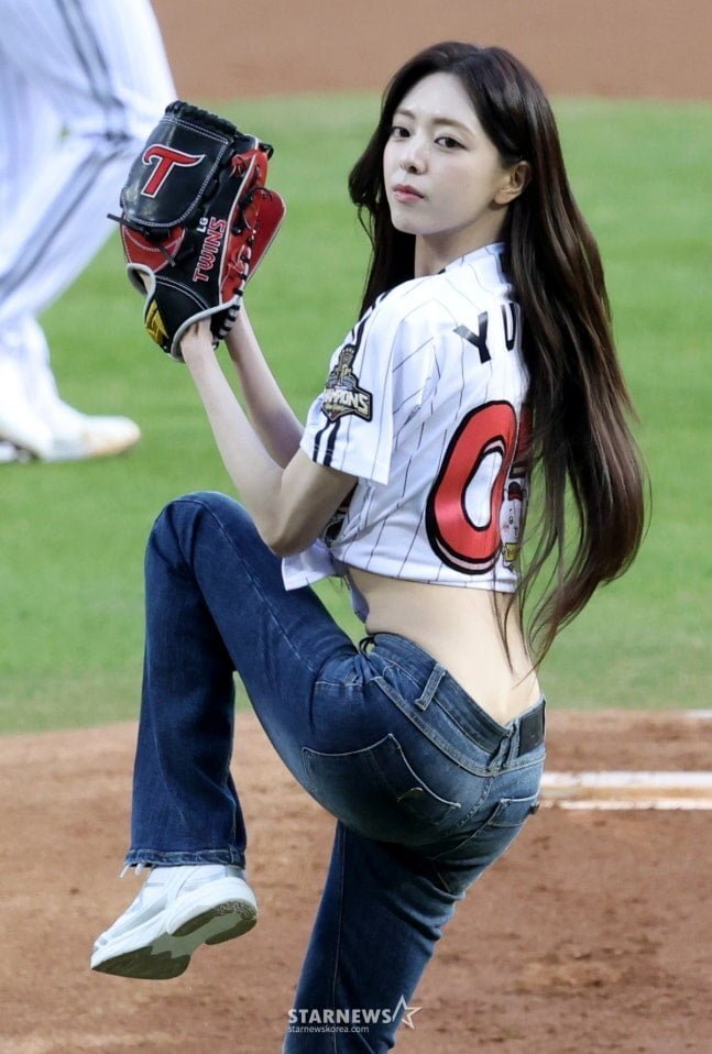 오늘자 시구하는 ITZY 유나 무보정 몸매 체감샷