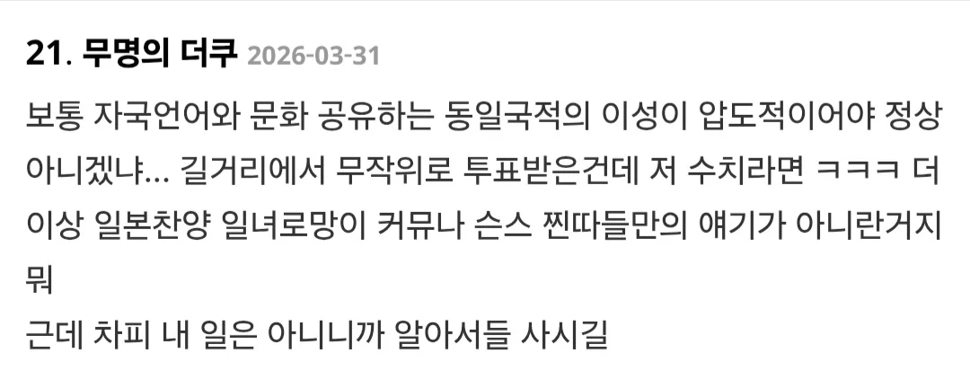 남자들의 일녀 선호도가 높은 걸 본 더쿠 반응
