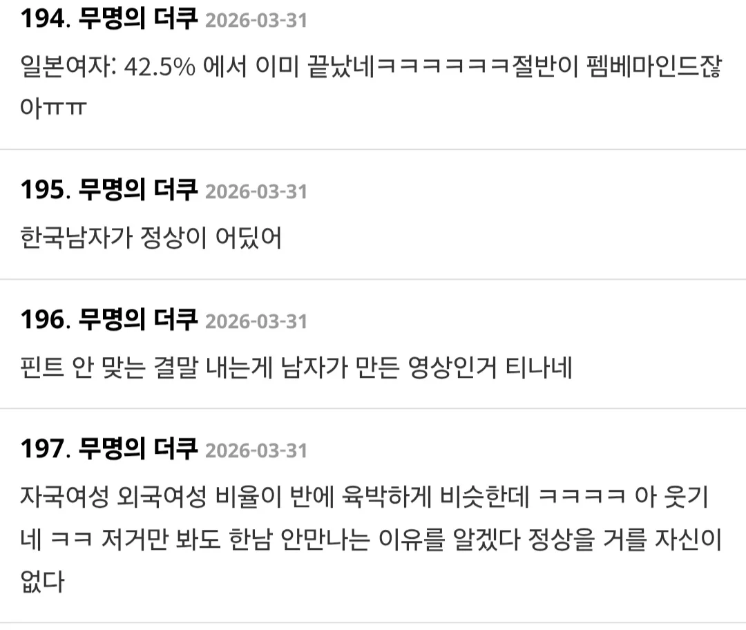 페미: 한남 만나기 싫어 (정상 여자는 한남 선호)