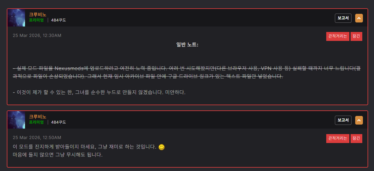 근데 욕을 먹었는지 고정 댓글을 남김