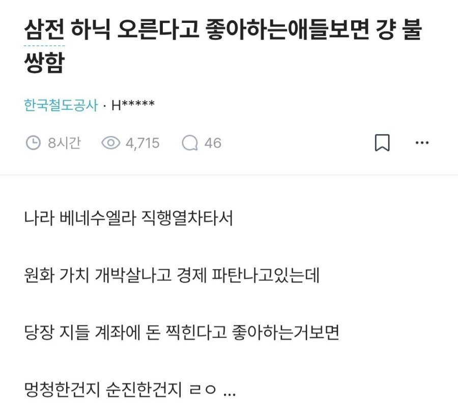아직도 우리나라가 베네수엘라 간다는 걸 믿는 사람들이 있나 보네요
