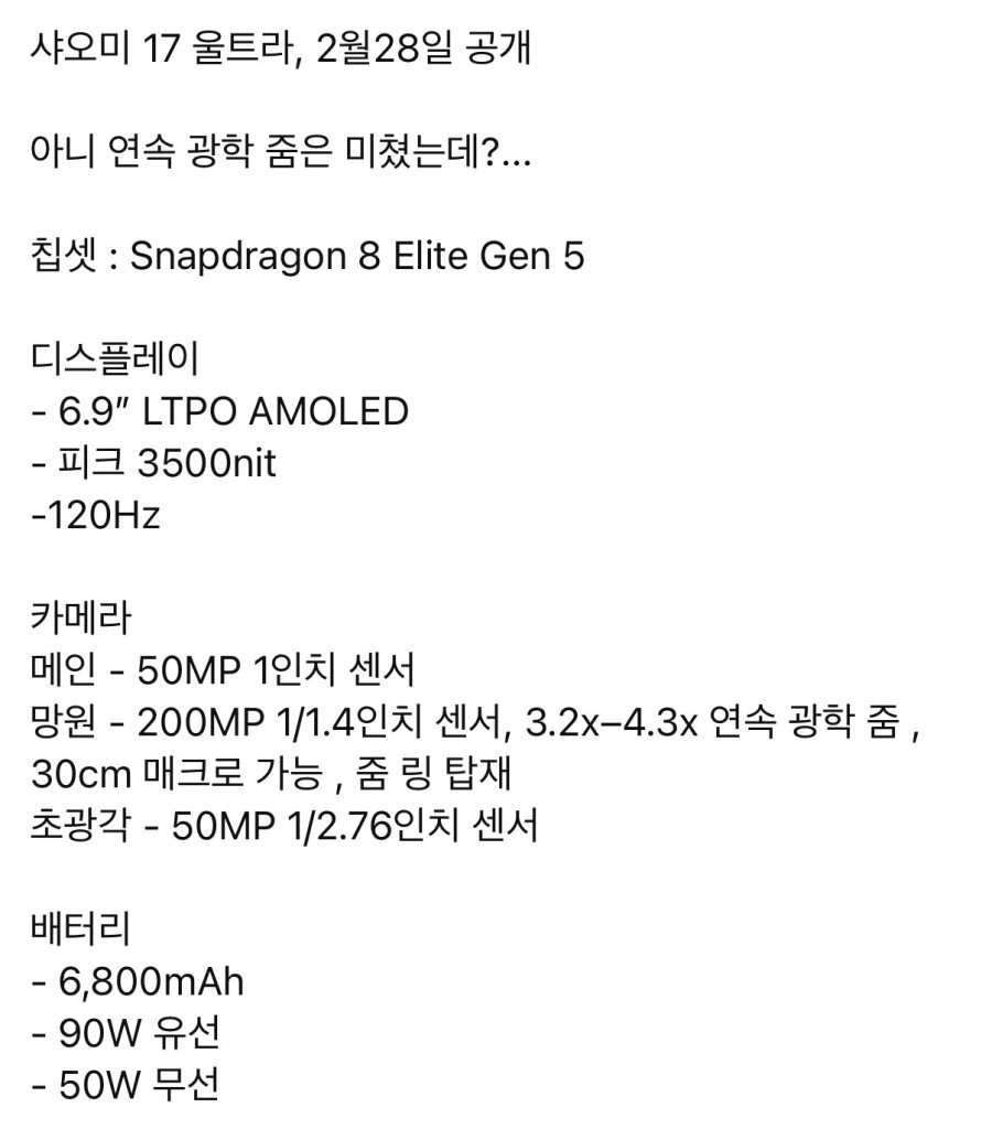 사악한 샤오미 17울트라