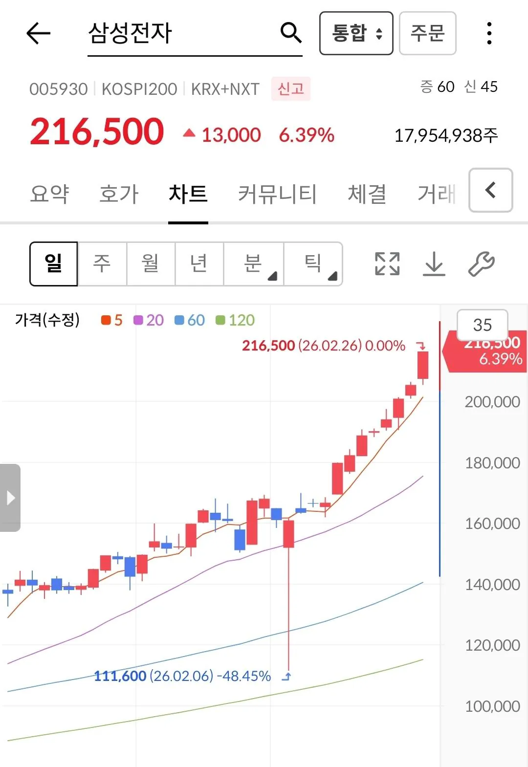 엔비실적 영향인지 삼전 대폭발