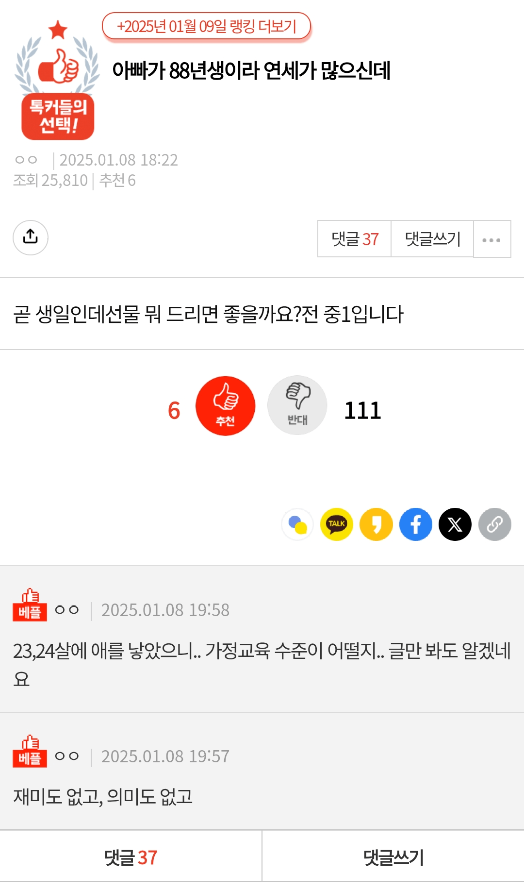 연세가 많으신 아빠 생일선물 고민하는 중1