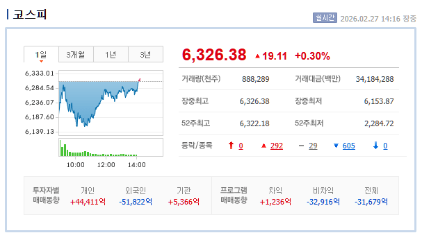 코스피 근황 (금일 하락후 전고점 갱신) 조회 0 | 댓글 0건 가자가자가자고 2시간전 엔비디아 하락, 나스닥 하락, 반도체주 하락으로 인한 오전 6100대까지 떨어졌던 지수 6300까지 복구;; 전고점 갱신;;매매 동향: 개인: +4.5조 매수 (개미들 화력 무엇...) 외국인: -5.1조 매도 (외인들은 익절 중인 듯) 기관: +4,711억 매수삼전 반짝 세일 후 정상가 돌입 0