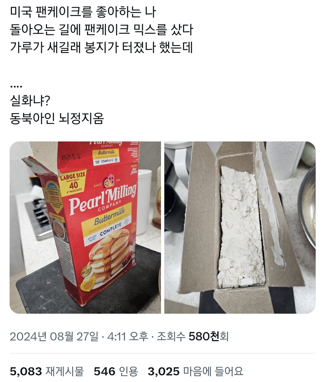 미국에서 팬케이크 믹스 사고 뇌정지 온 사람