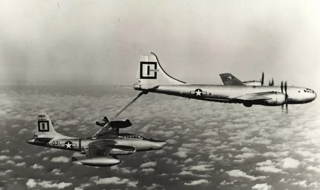 - EB-29 양쪽에 연결 된 F-84 전투기 -