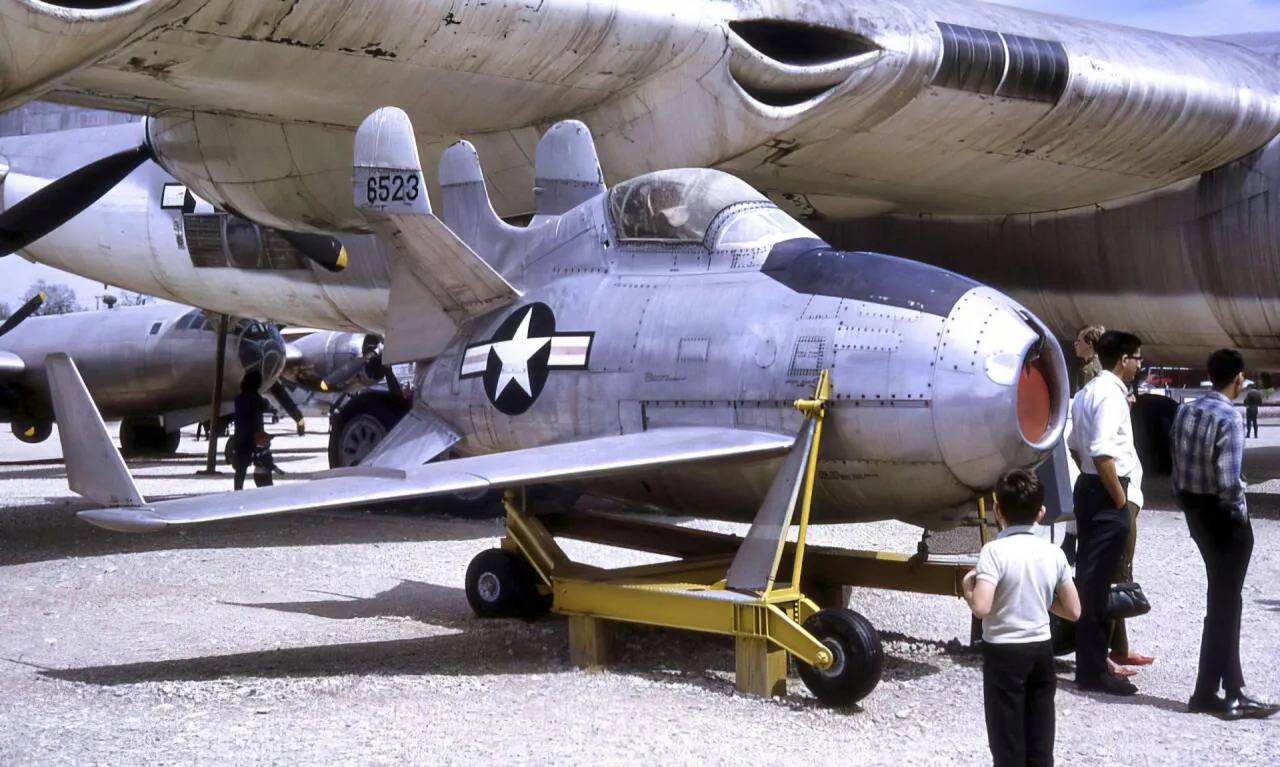 폭격기 양쪽 윙팁에 F-84 전투기 두대를