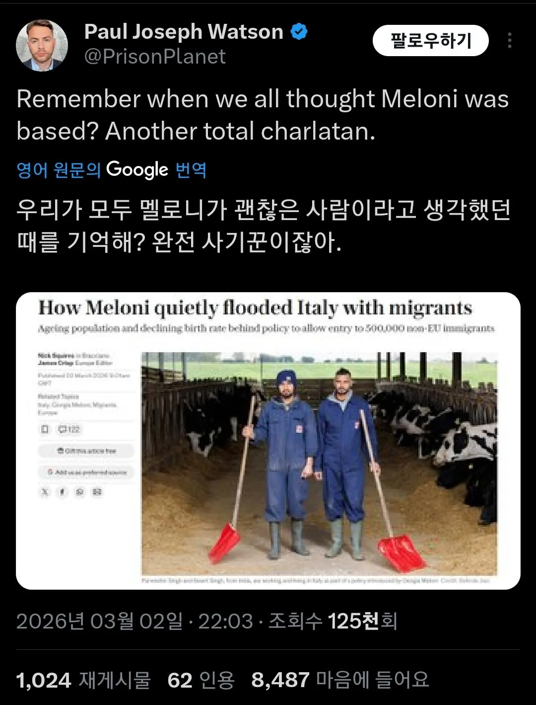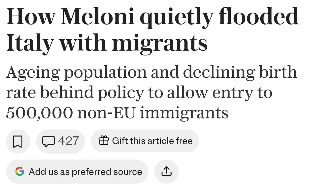 하지만 생각과 달리 멜로니는 '합법적인' 이민을 통해 수십만명씩 받아들이고 있음