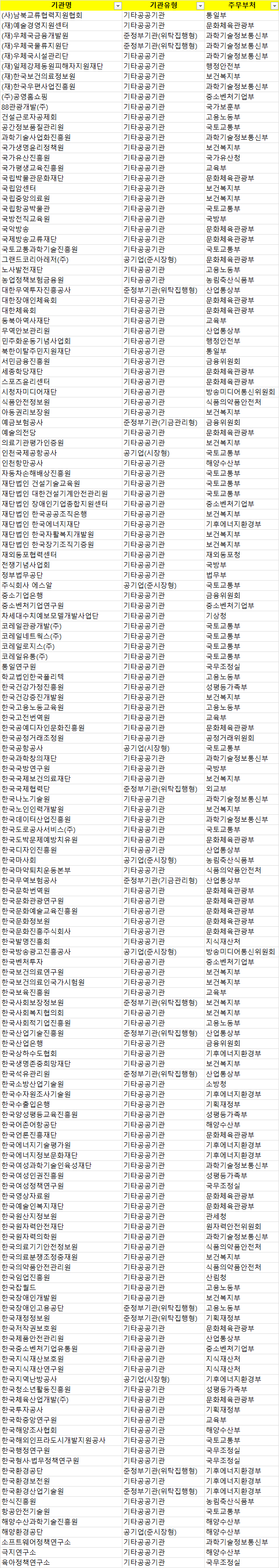 지금 공기업 난리난 상황 조회 0 | 댓글 0건 돌잔치앤가반나 2시간전 대부분 서울에 있는 공공기관들인데 싹다 지방이전함 ㄷㄷㄷ 기러기 생활 확정 (+ 여기에 없는 준공공기관 다 합쳐 지방이전 대상 350개나됨) 0