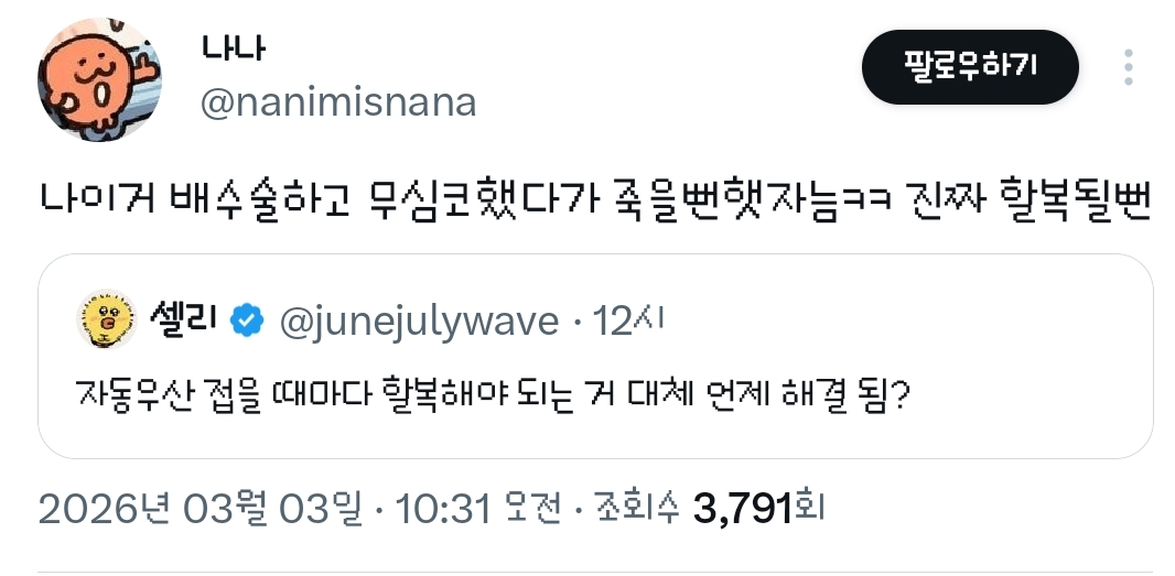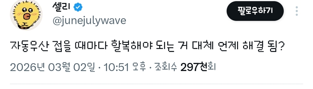 자동우산 접을 때마다 할복해야 되는 거 대체 언제 해결 됨?