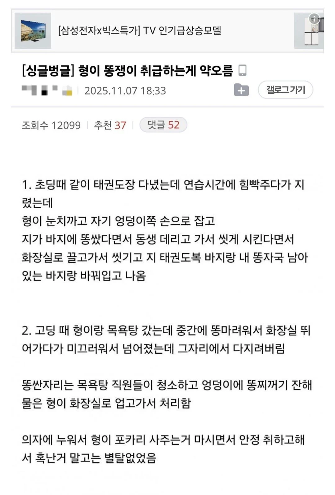 자기 형에게 똥쟁이 취급 당하는 남동생