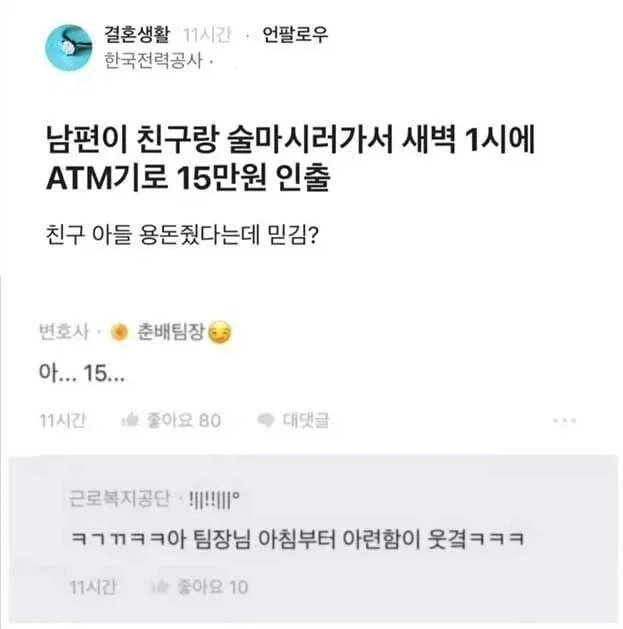 새벽 1시에 15만원 인출해서 친구 아들 용돈 준거라는데
