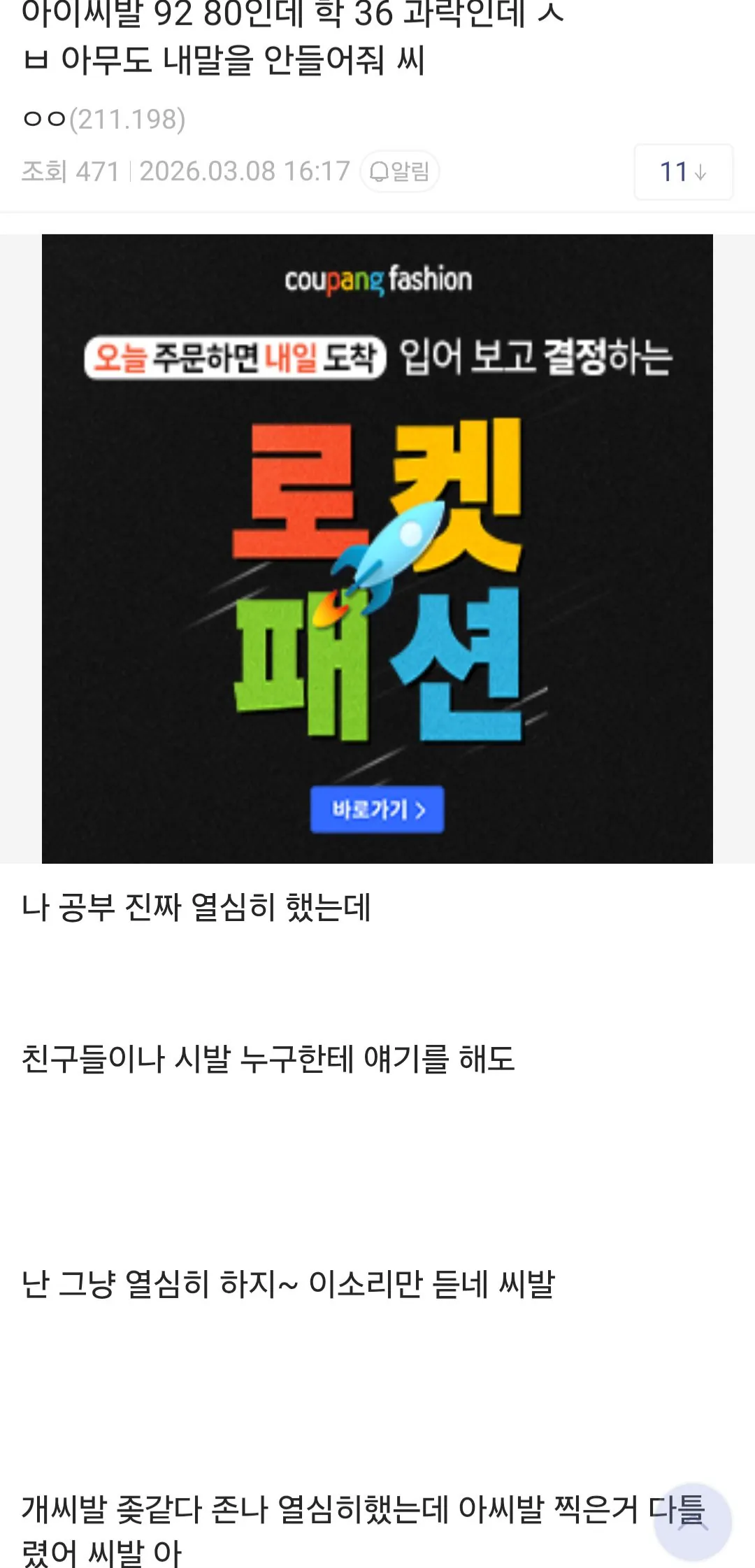멘탈 털려버림(나도 운좋게 필합격권이긴한데