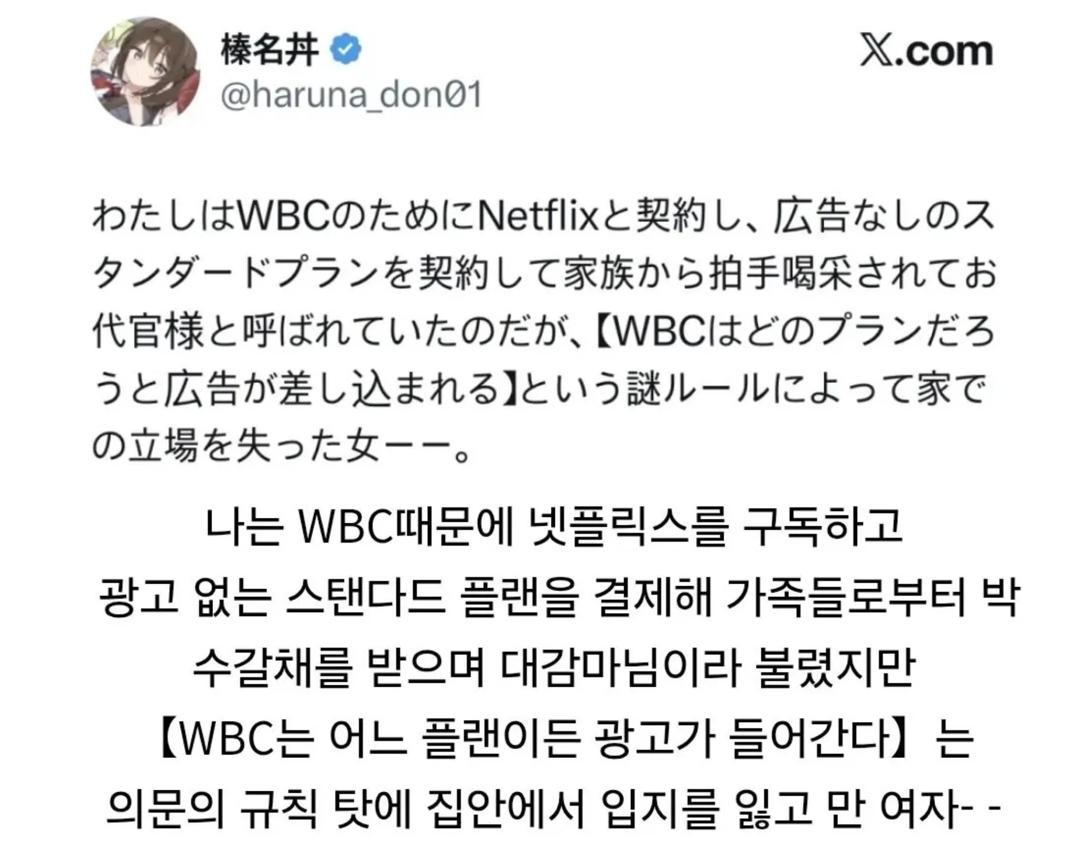 wbc 볼려고 넷플 결제한 사람