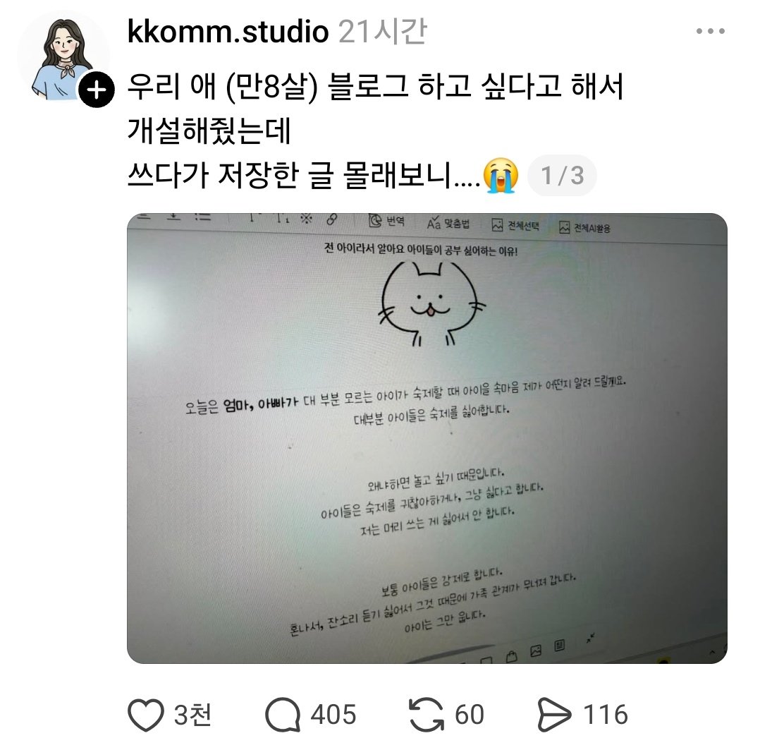 우리 애 블로그 하고싶다고 해서 개설해줬는데