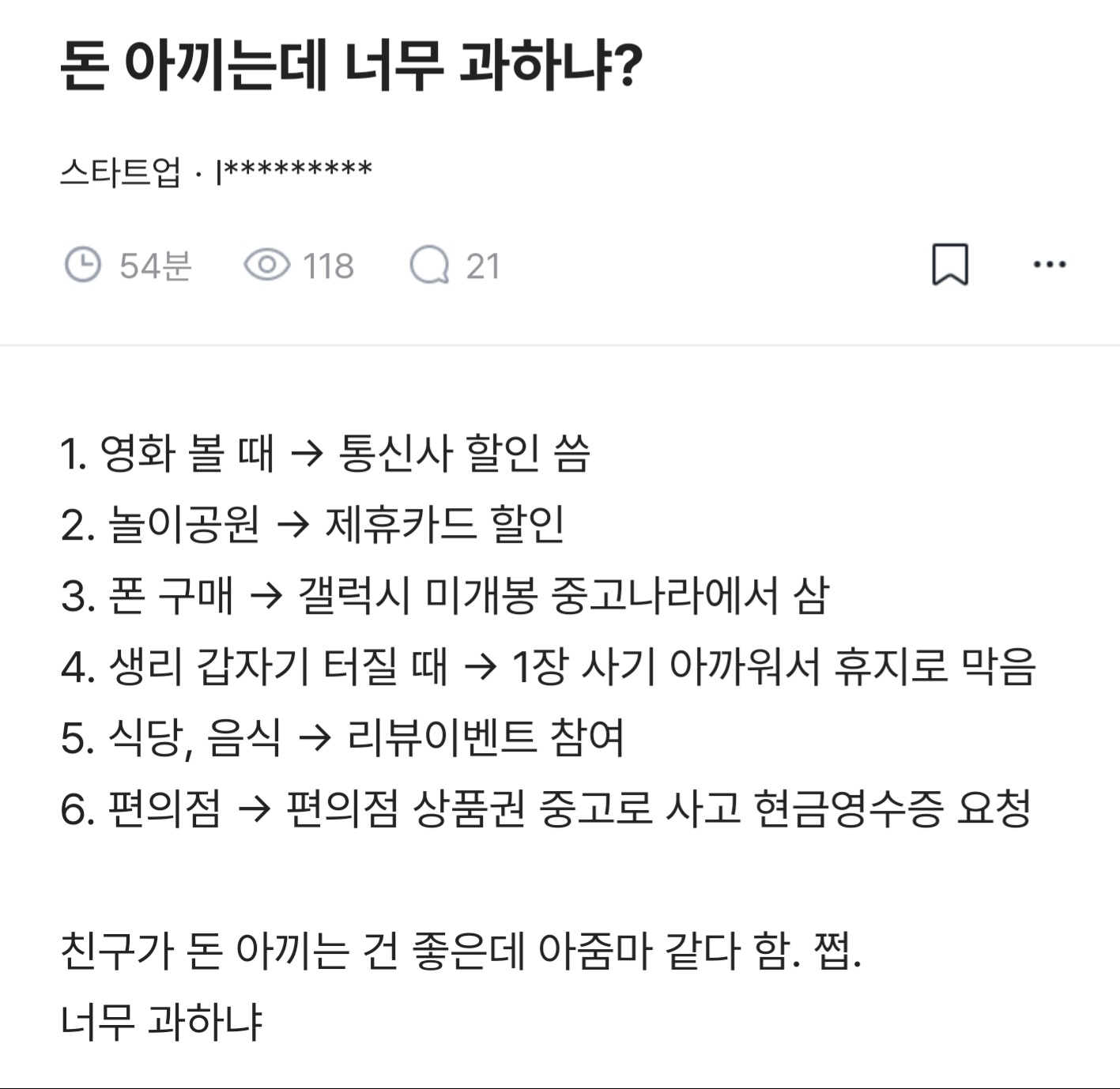 돈 아끼는데 너무 과하냐?