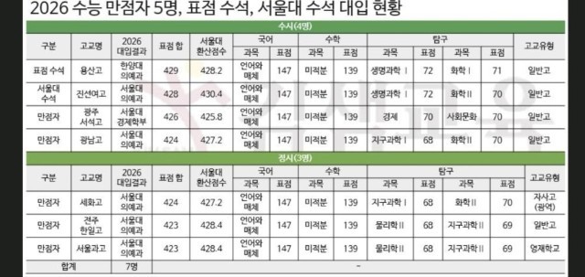 수시 납치 당한 2026 수능 전국 수석 조회 0 | 댓글 0건 네이마르로 2시간전 자연계열 표준점수 전국수석 한양대의예과로 수시 납치 당했네요 26수능 자연계열 수능만점자는 전부 서울대 의예과 갔는데.. 정시로 가면 점수상으로 서울대 의예과 랑 연세대 의예과는 합격인데 안타깝게 되었네요.. 서울대 의예과랑 한양대 의예과.. 비교가 안될텐데 본인은 얼마나 아쉽겠나요.. 0