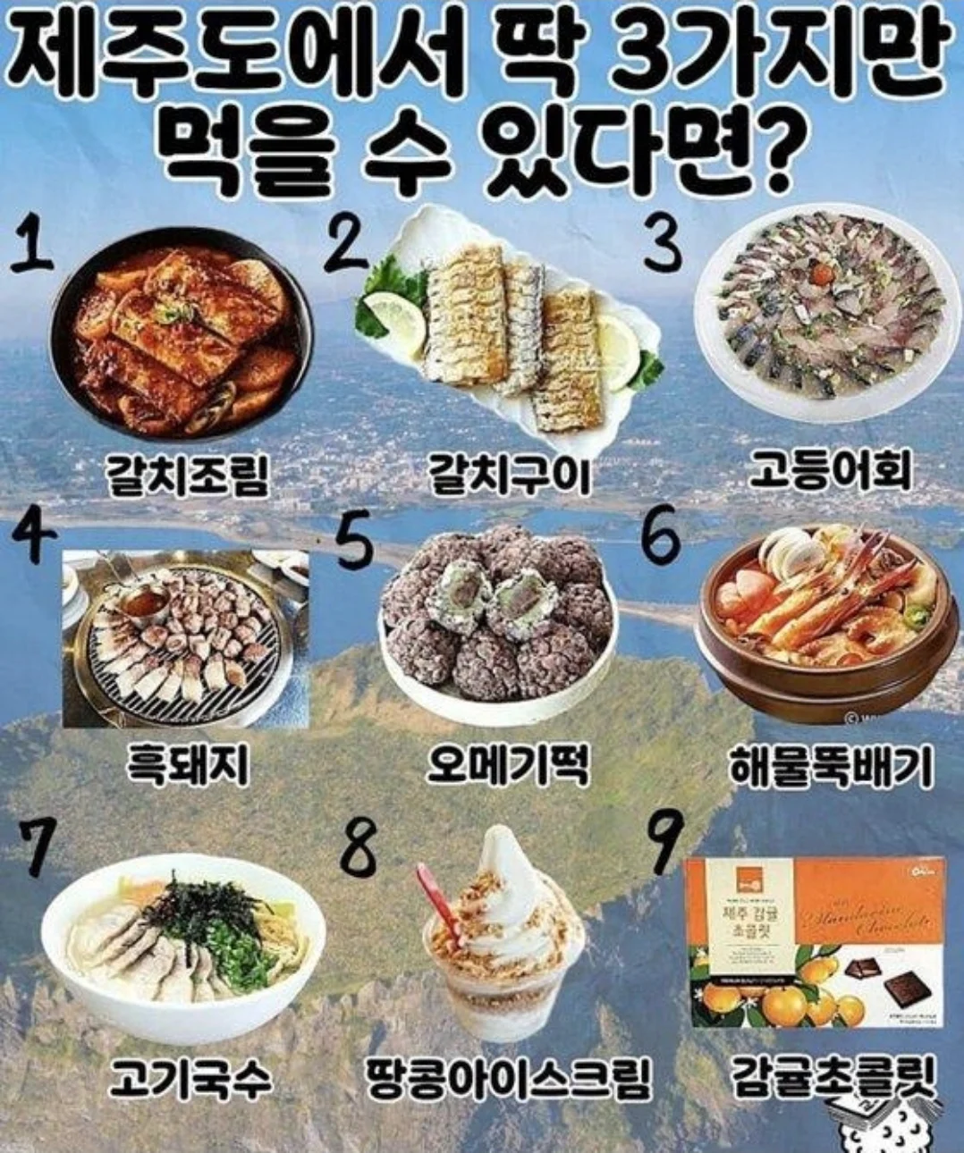 제주도에서 딱 3가지만 먹을 수 있다면?