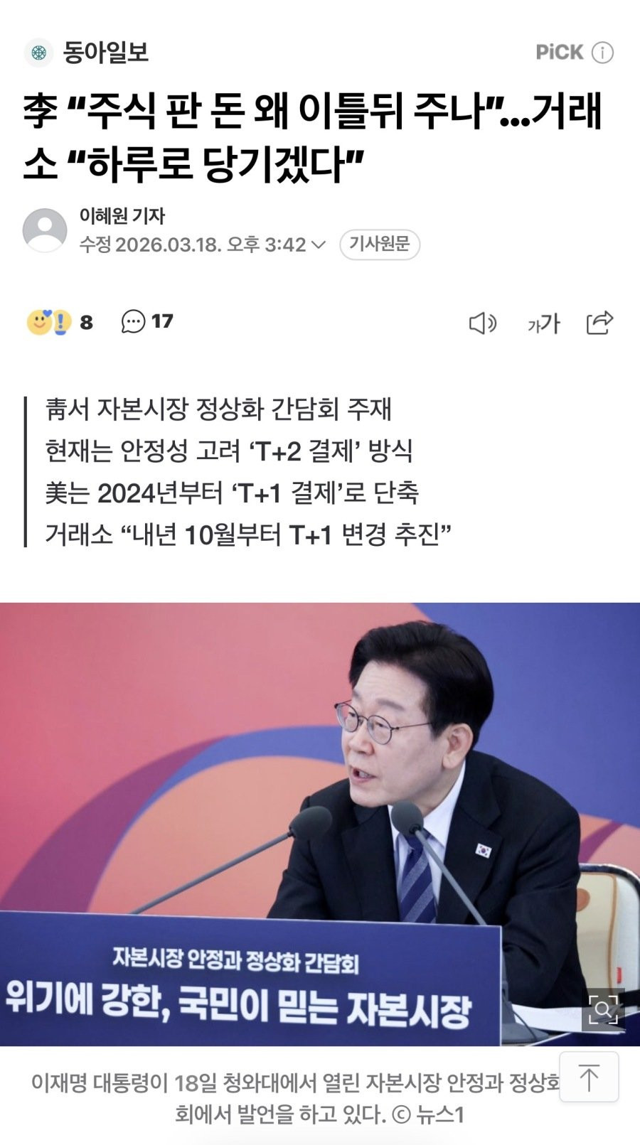 李 “주식 판 돈 왜 이틀뒤 주나”…거래소 “하루로 당기겠다”|동아일보