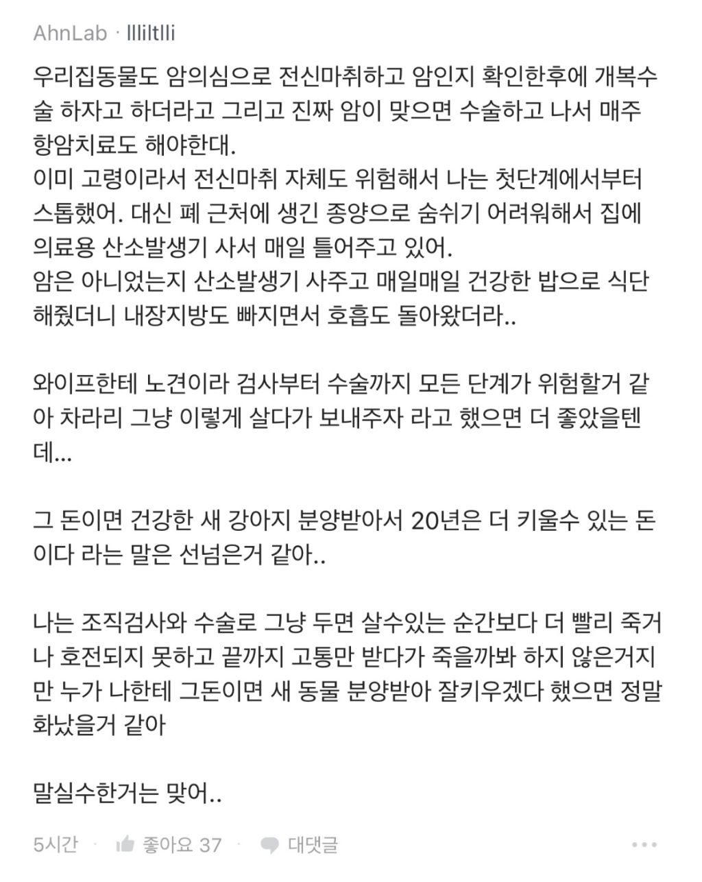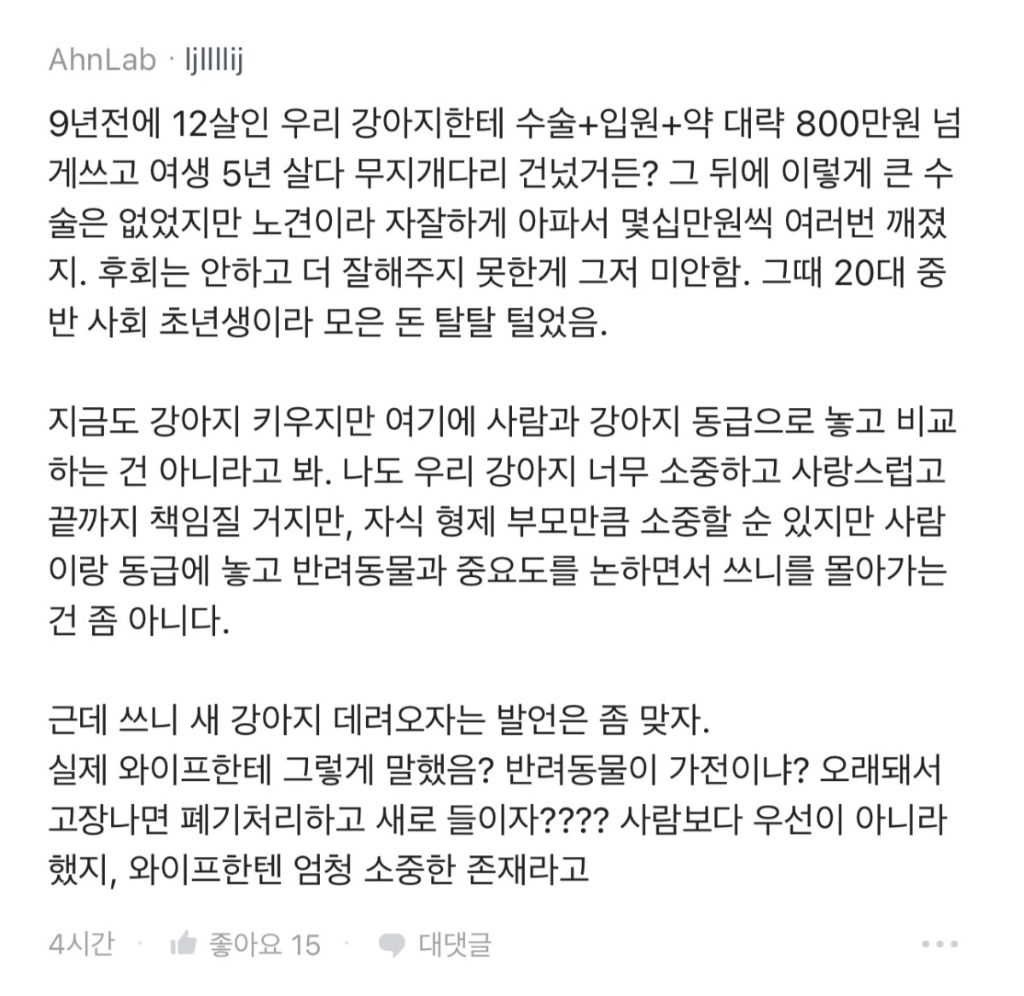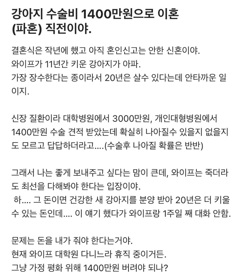 강아지 수술비 1400만원으로 이혼 직전이야...