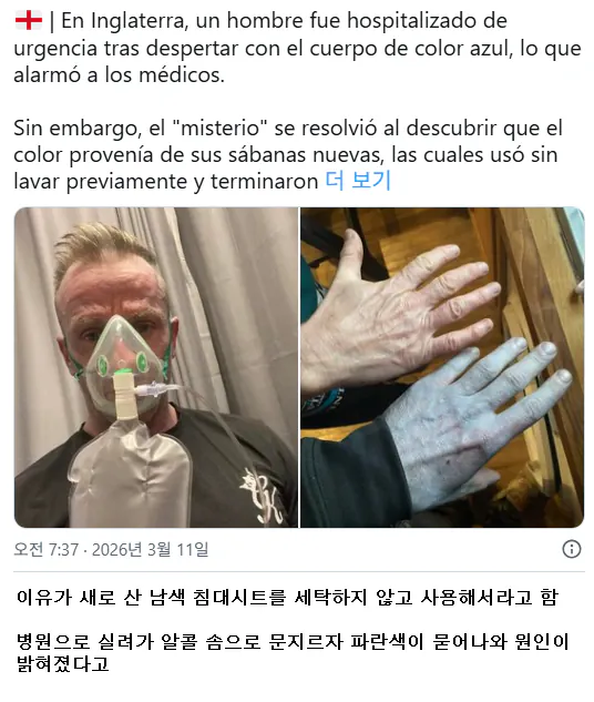 아침에 일어났는데 온몸이 파랗게 변한 영국 남성