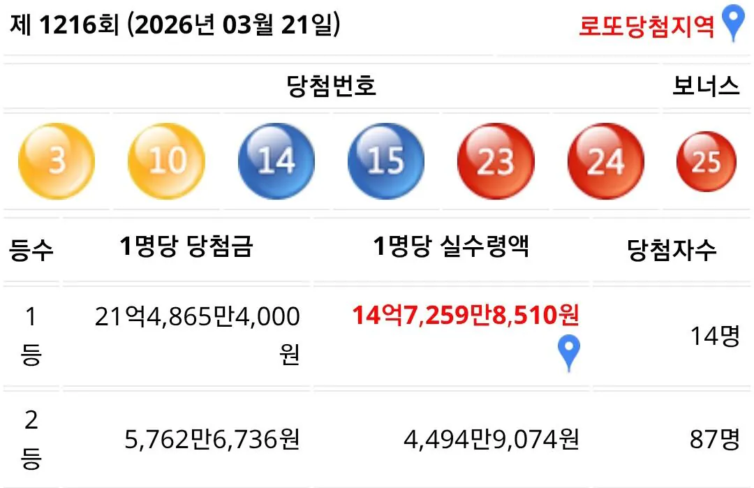 이번주 로또 1등 2등 실수령액
