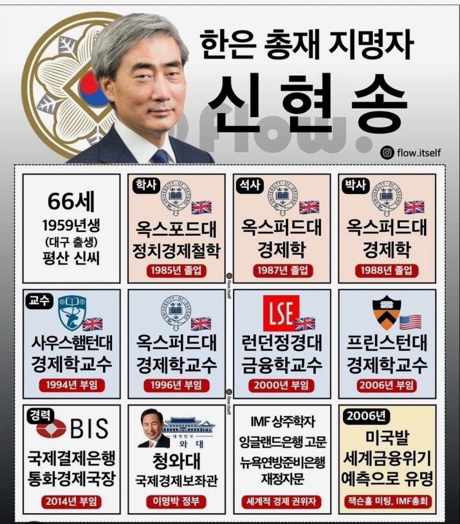 한은총재 지명자 스펙 ㄷㄷㄷ