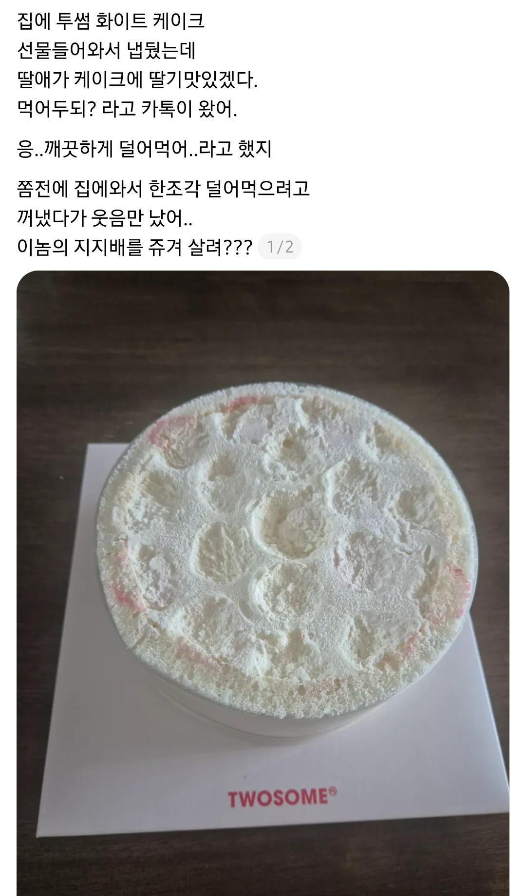 고딩 딸이 집에 있는 딸기 케이크 먹어도 되냐고 연락옴