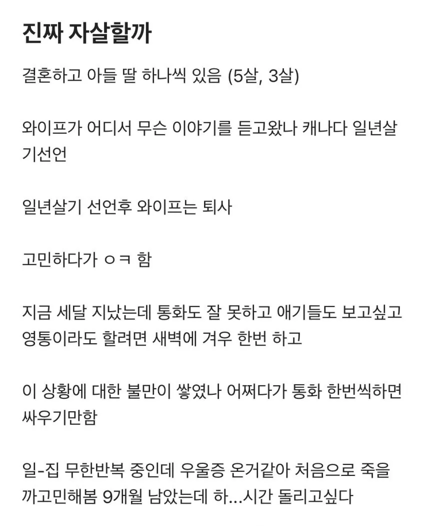 아내가 일년 살기한다고 떠났어요