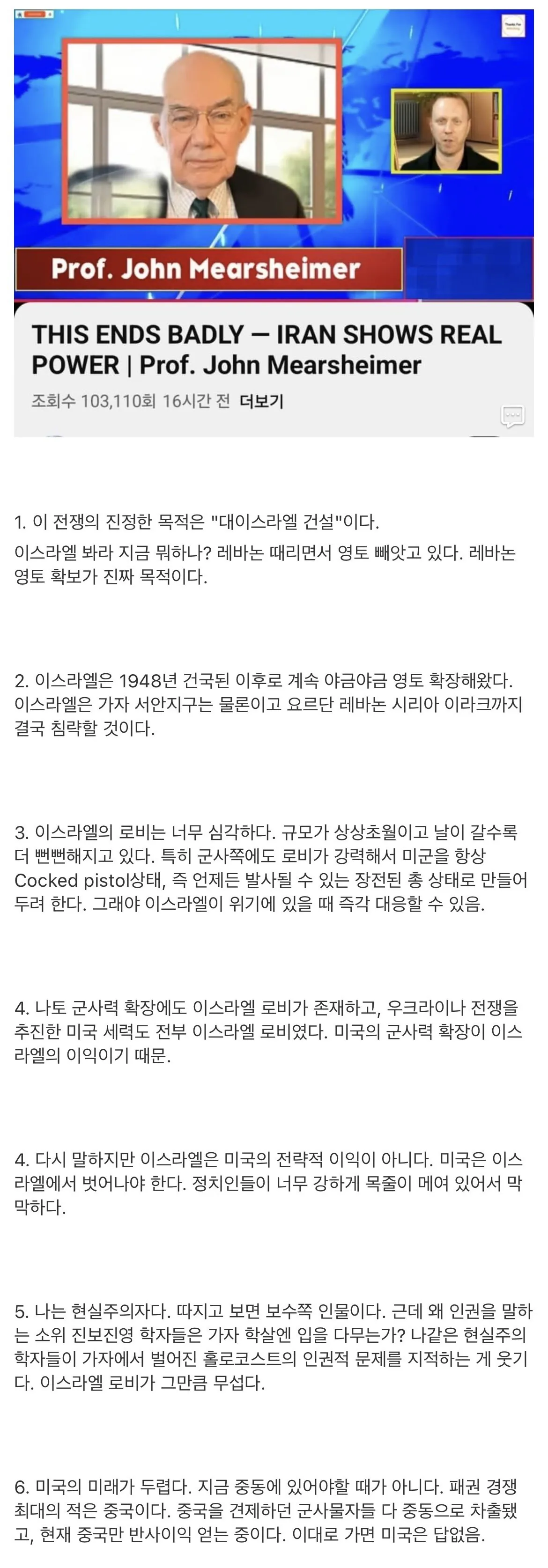 미어샤이머의 미국 이란 정세 분석