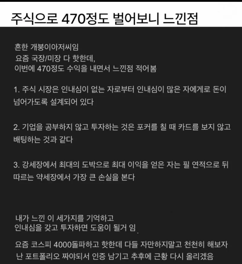 주식으로 470정도 벌어보니 느낀점