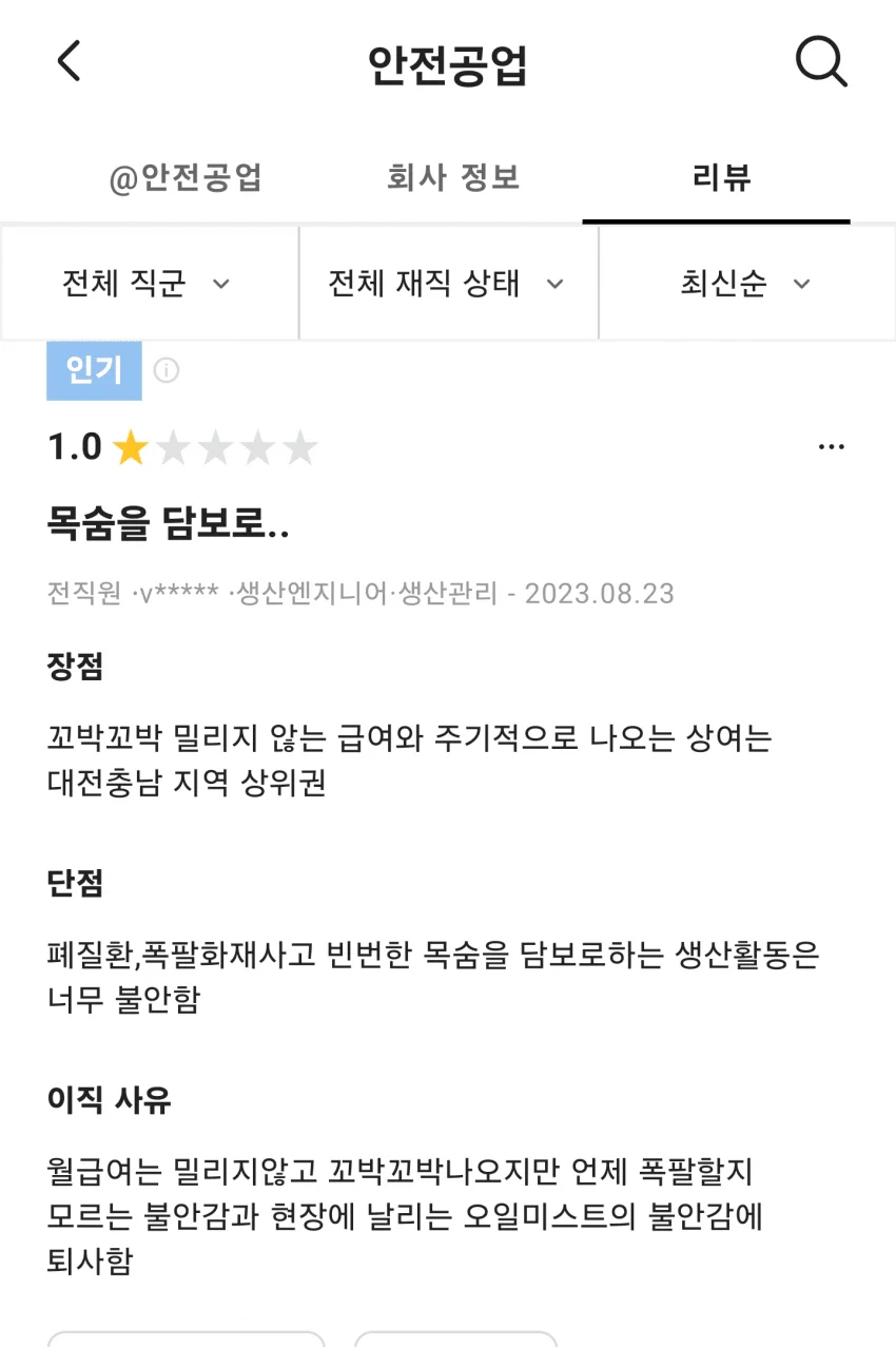대전 화재 참사..3년전 회사리뷰