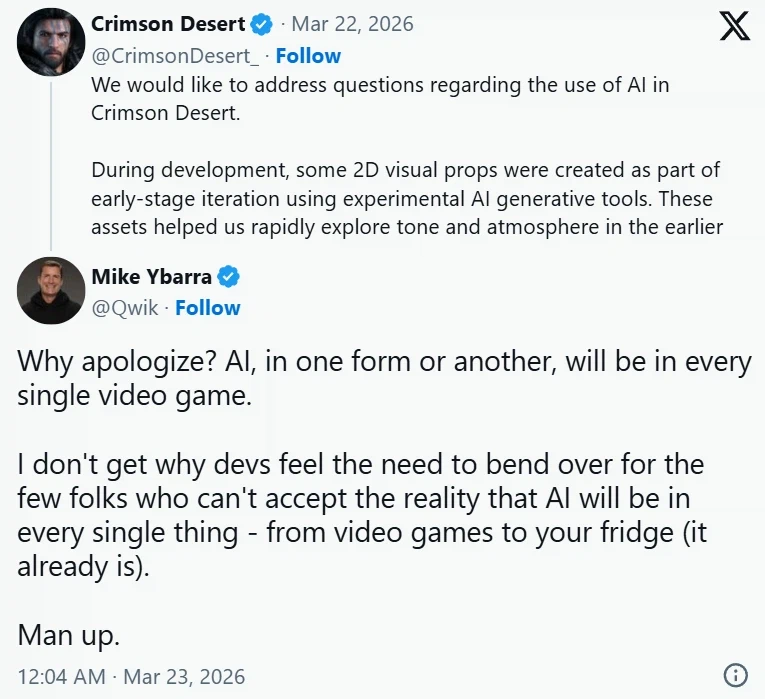 https://ixbt.games/en/news/2026/03/23/eks-prezident-blizzard-raskritikoval-avtorov-crimson-desert-iz-za-izvinenii-za-ispolzovanie-ii.html