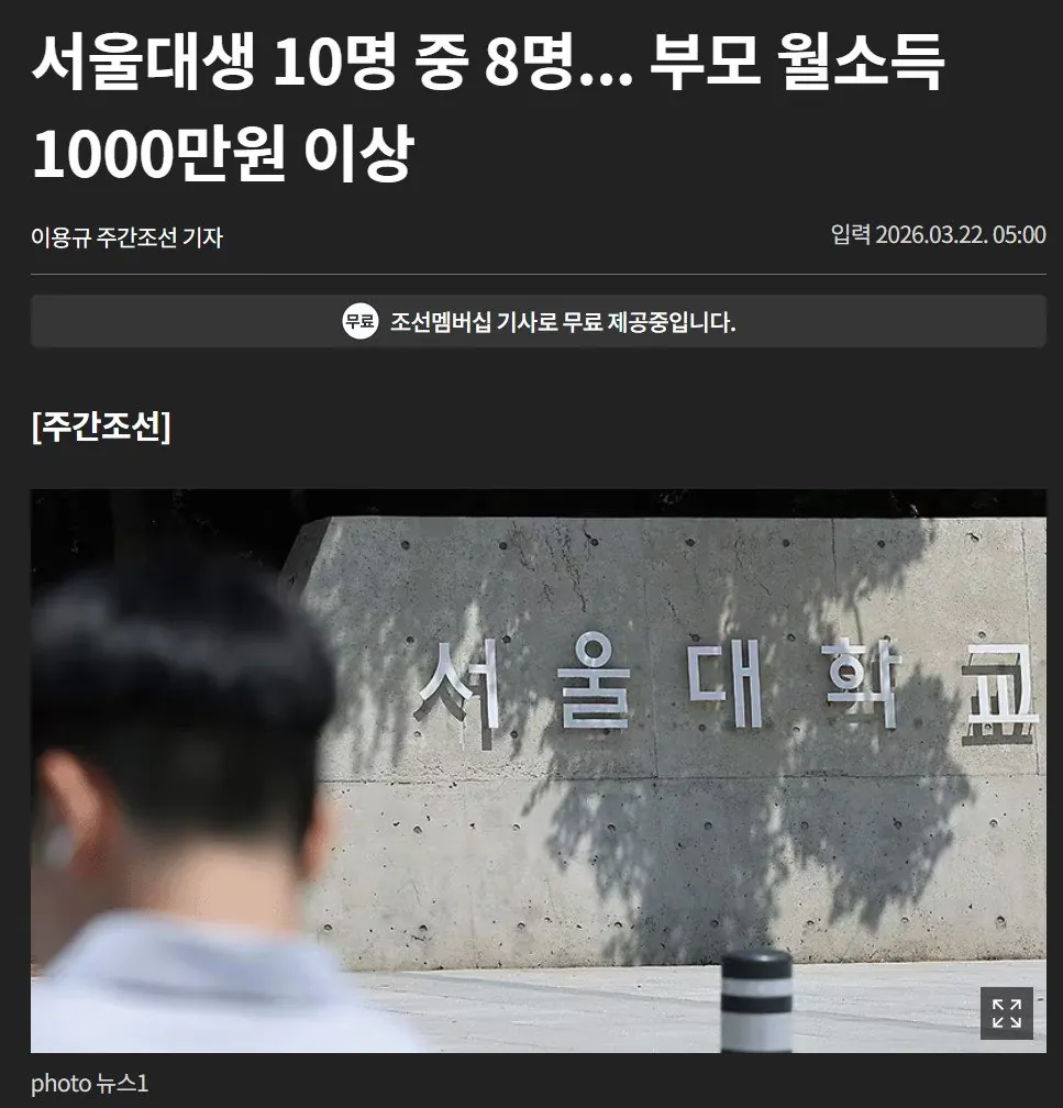 서울대생 10명 중 8명...부모 월소득 1000만원 이상
