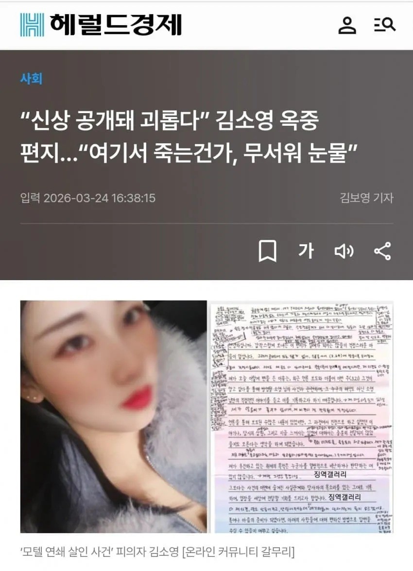 연쇄살인마 김소영의 옥중편지 + 여초 반응
