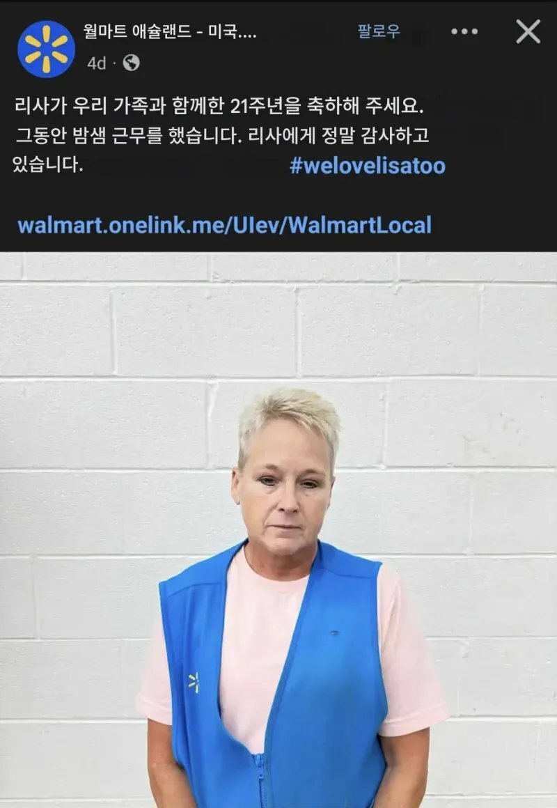 근속 21년 직원을 축하해주는 미국 월마트